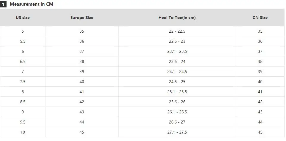 NOTE: foot length is not the insole length!( foot length less than insole length)manual measurement, please allow 0.5cm error.thanks